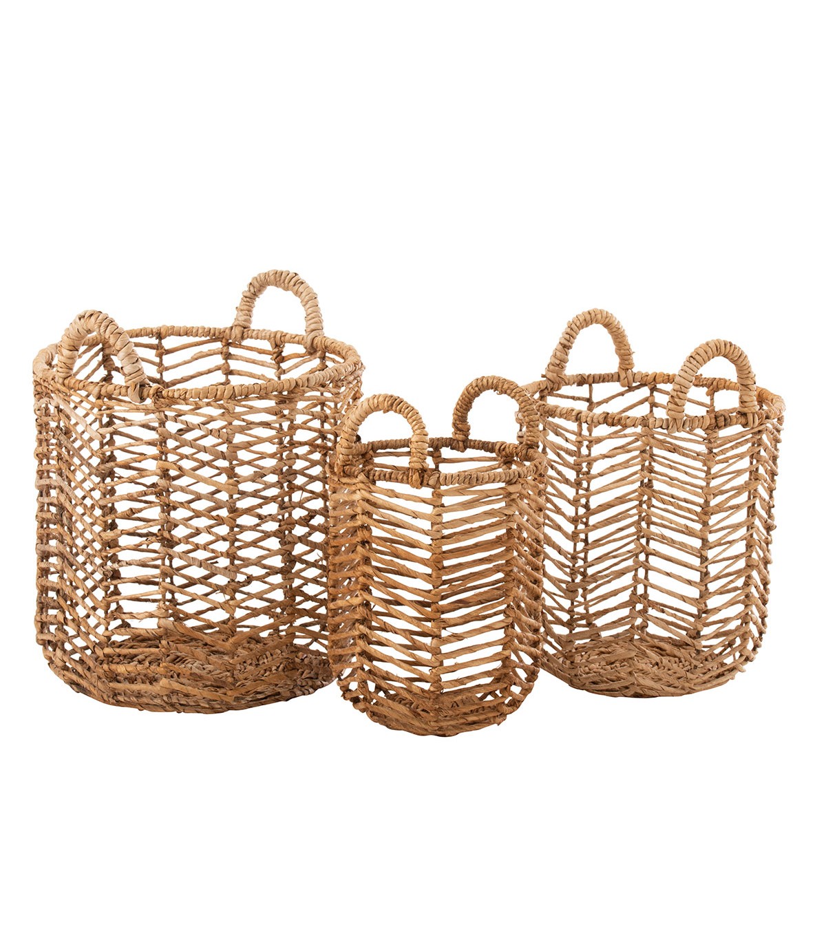 En savoir +Voici un lot de 3 paniers empilables en feuille de banane très discret qui va parfaitement s'accorder avec votre salon !