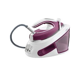 Découvrez la centrale vapeur moderne Calor 3700342453973 de couleur violet et blanc, conçue pour un repassage efficace et rapide. Elle offre un débit de vapeur continu de 125 g/min et une fonction pressing de 460 g/min pour des résultats impeccables. Equipée dune semelle Durilium Airglide, elle glis