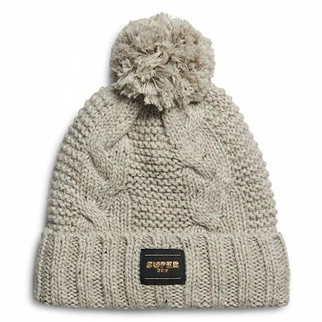 Optez pour le bonnet de la marque SUPERDRY !Coloris : Beige Tricot en huitMélange de lainePomponDoublure en poils synthétiquesLogo Superdry100% Polyester