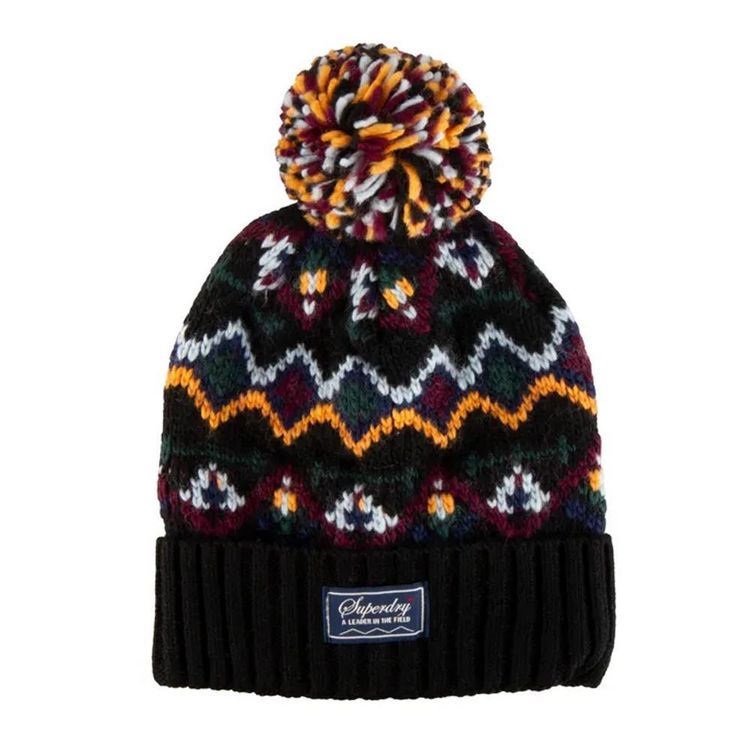 Optez pour ce bonnet Superdry Coloris : NoirComposition : Patte avec le logo de la marque90% acrylique, 10% laineMotif FairisleLaine mélangéePom-pomOurlet retroussé