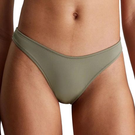 Craquez pour le bas de maillot de bain de la marque CALVIN KLEIN !Coloris : Kaki taille mi-hautecouverture brésilienne audacieusearticle entièrement doubléinsigne monogramme Calvin Klein dans le dosComposition : 85 % polyester 15 % élasthanne