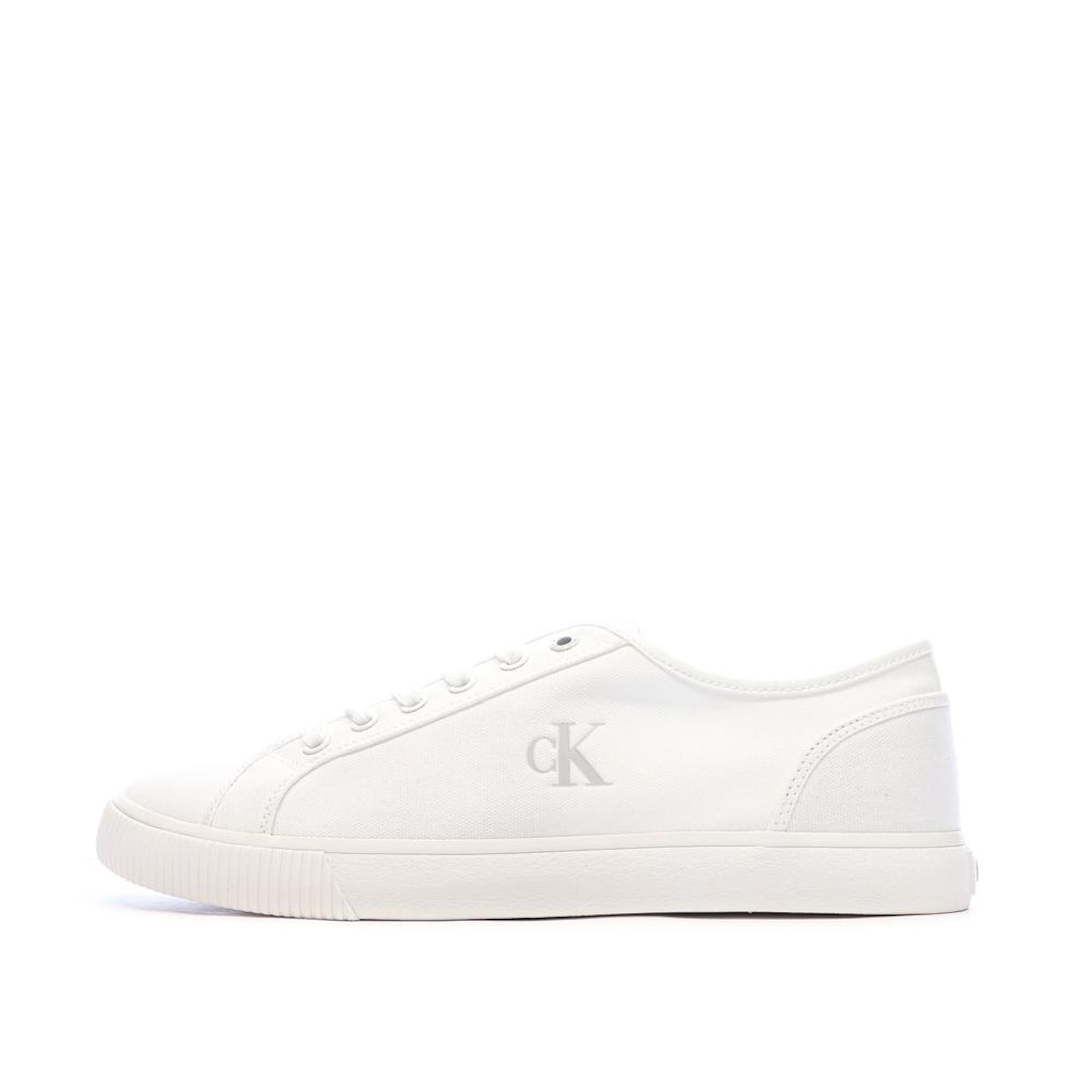 Optez pour ces baskets de la marque Calvin Klein !- Couleur : Blanc- Chaussures basses- Tige textile- Fermeture par lacets- Semelle extérieure synthétique
