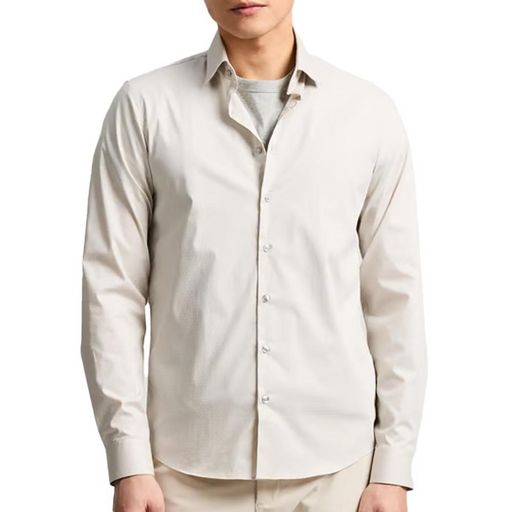 Chemise homme de la marque Calvin Klein !Manches longuesCol chemiseFermeture à boutonsColoris : beigeLogo brodéLéger motifsSlim fitComposition : 97% coton , 3% élasthanne