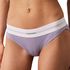 Craquez pour la culotte de la marque Calvin !Coloris : MauveCoupe culotteCouverture altiqueTaille mi-hauteAspect uni côteléCeinture élastiquéeLogoComposition : 55% Coton organique 37% Modal 8% Elasthanne