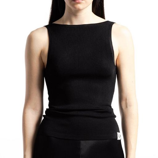 Optez pour ce débardeur de la marque Calvin Klein JeansColoris : Noir Col rondDécolleté dans le dosComposition : 74% Viscose, 22% Polyamide et 4% Élasthanne