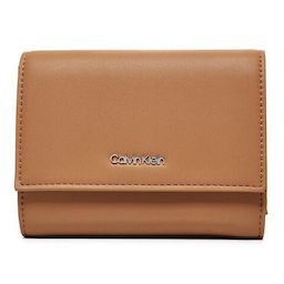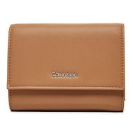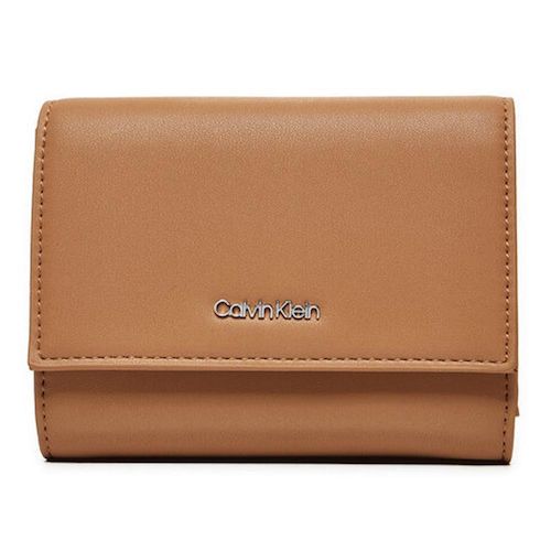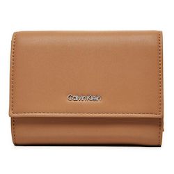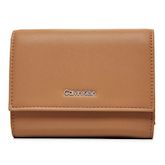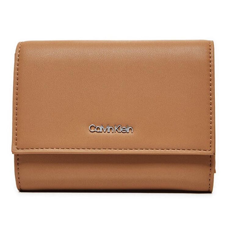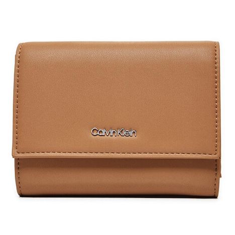 Craquez pour le portefeuille femme de la marque Calvin KleinColoris : CamelLogo métalliqueFermeture par pressionRangement pour cartes et monnaiesDimensions : 13x10x3 cmComposition : Similicuir