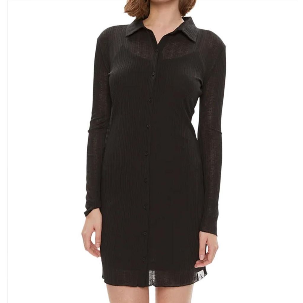 Optez pour cette robe Calvin Klein JeansColoris : NoirManches longuesComposition : 100% polyester recycléCol chemiseSlim Fit