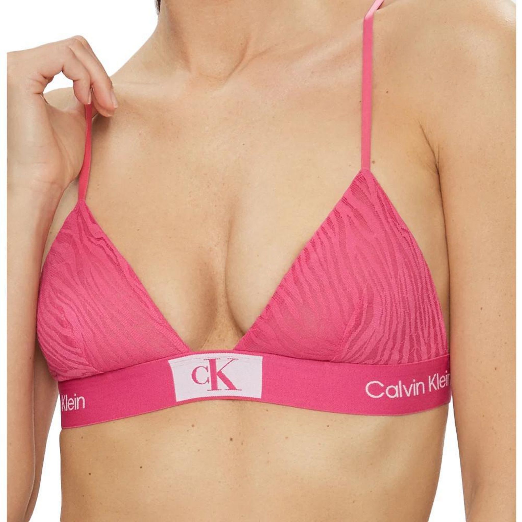 Craquez pour le soutien gorge de la marque CALVIN KLEIN ! Coloris : Rose mélange de nylon-élasthanne confectionné à partir de fibres recyclées finition semi-transparente bonnets triangle doux pas de rembourrage bretelles réglables fermeture par crochet derrière bords élastiques Calvin Klein emblématiques Composition : 53 % nylon recyclé 36 % nylon 11 % élasthanne