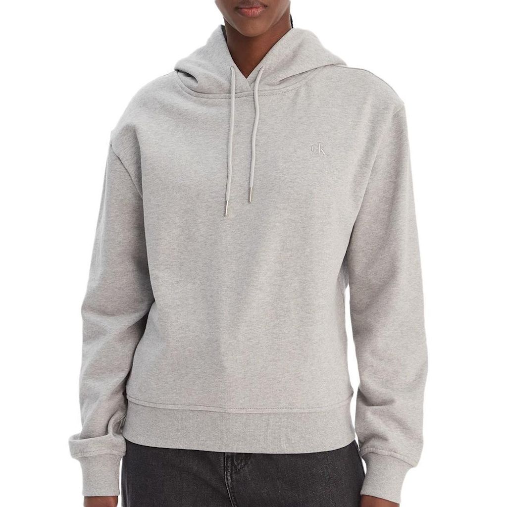 Optez pour ce sweat Calvin Klein Jeans à prix bas !Coloris : Gris Manches longuesComposition : 92 % coton, 8 % polyesterMonogramme Calvin Klein brodé sur la poitrineFerrets en métal griffés sur le cordon de serragePoignets et base côtelésCapuche à cordon de serrageTissu éponge de coton