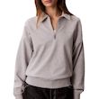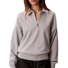 Optez pour ce sweat Calvin Klein Jeans à prix bas !Coloris : Gris Col poloManches longuesComposition : 100% CotonCoupe droiteCol poloPatte zippéeLogo imprimé sur poitrine