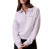 Optez pour ce sweat Calvin Klein Jeans à prix bas !Coloris : Mauve Col poloManches longuesComposition : 100% CotonCoupe droiteCol poloPatte zippéeLogo imprimé sur poitrine