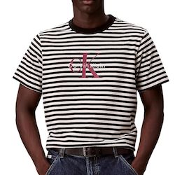 Optez pour le t-shirt de la marque CALVIN KLEIN JEANS !Coloris : Noir/ÉcruCol rondManches courtesRayuresLogo CKComposition : 100% Coton