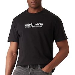 Craquez pour le t-shirt de la marque CK !Coloris : Noir Col rond Manches courtes Logo imprimé Composition : 100% Coton