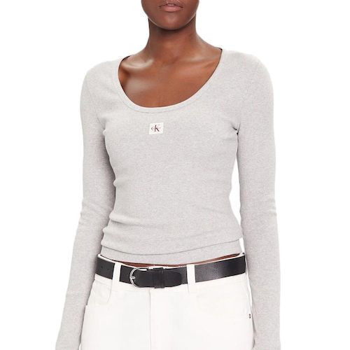 Optez pour ce t-shirt manches longues Calvin Klein Jeans à prix bas !Coloris : Gris Col rondManches longuesComposition : 94% coton, 6% élasthanne