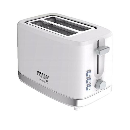 Le Camry CR 3219 est un grille-pain efficace doté d'une puissance de 900 W, permettant de griller deux tranches de pain simultanément. Il propose six niveaux de grillage ajustables pour satisfaire différentes préférences. Ce modèle intègre des fonctions pratiques de réchauffage et de dégivrage, ainsi qu'un bac à miettes pour un nettoyage facile. Son design élégant en blanc s'adapte à toutes les cuisines. Léger et stable, il est muni de pieds antidérapants et d'un bouton d'arrêt immédiat pour une utilisation sécurisée. Fabriqué en plastique, il est adapté pour réchauffer des petits pains.
