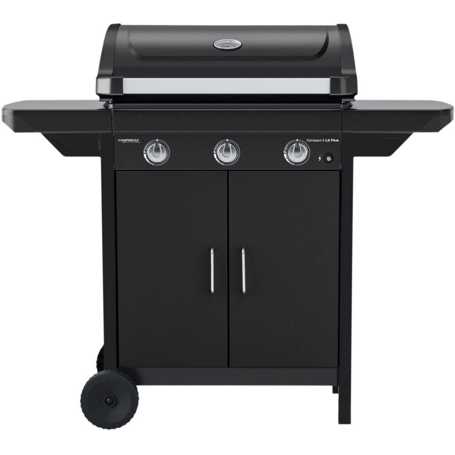Barbecue gaz COMPACT 3 LX PLUS noir grille et plancha 3 brûleurs sur chariot, 61x35 cm