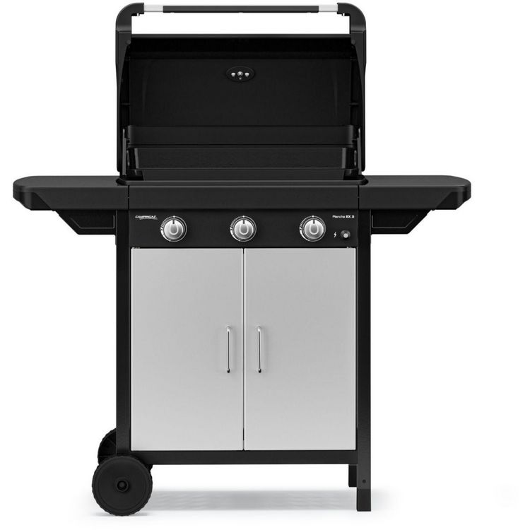 Plancha gaz EX 3 noir 3 brûleurs sur chariot couvercle de cuissson, 60x35 cm