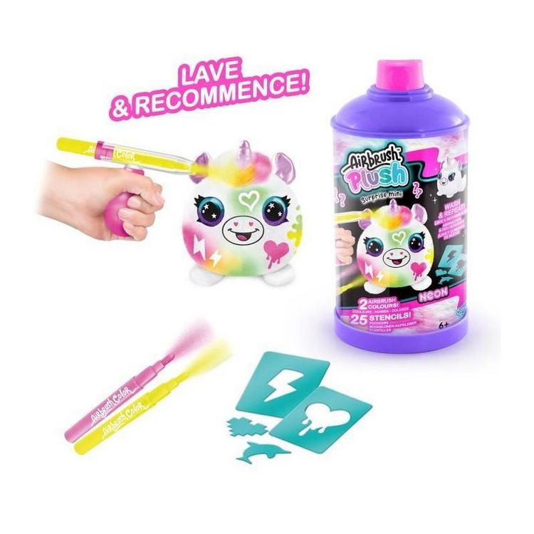 Canal Toys - Airbrush Plush - Mini Peluche surprise a Personnaliser avec Feutres et Pochoirs - 1-pack Néon - AIR 020