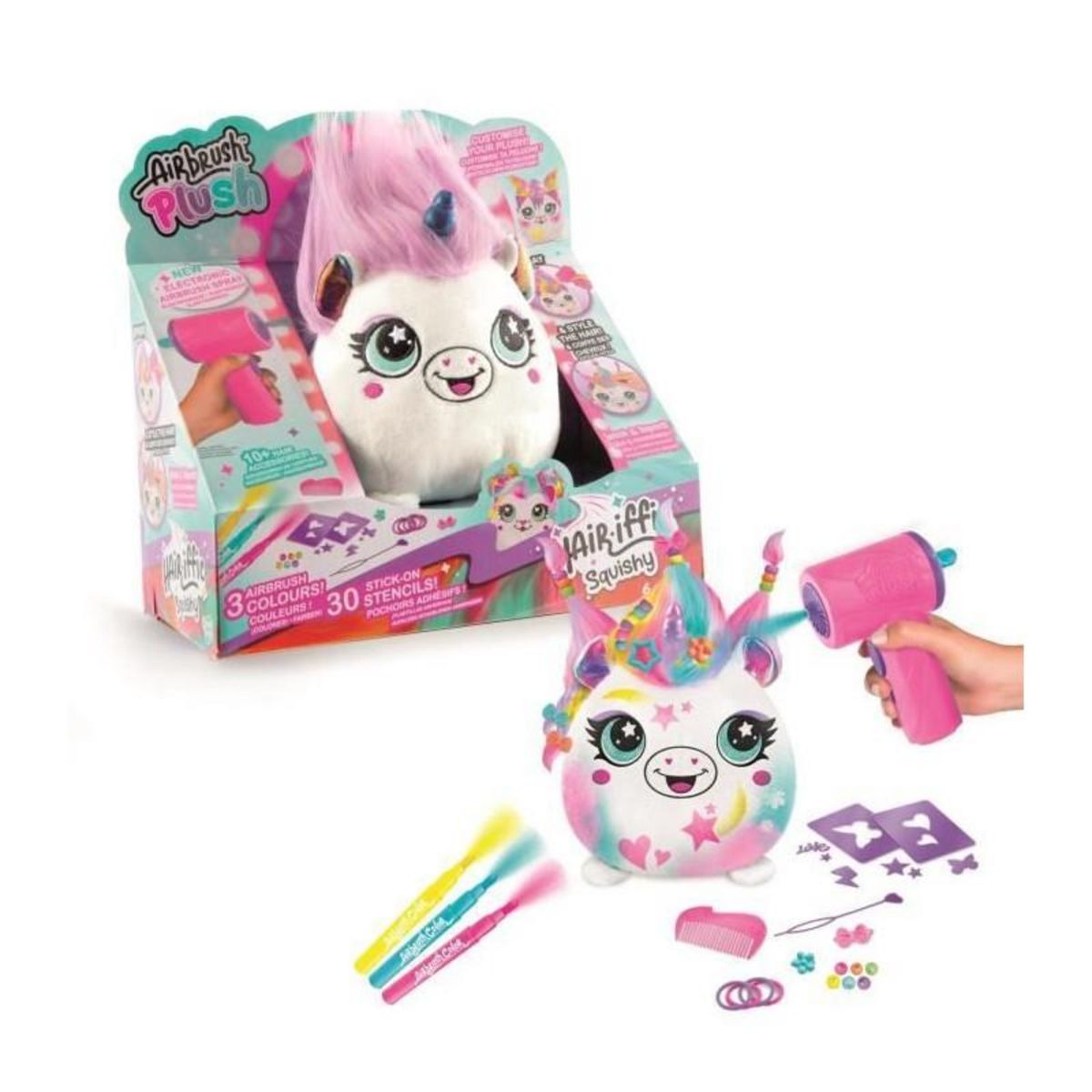 Canal Toys - Airbrush Plush - Peluche Squishy Hair'iffic a coiffer et décorer avec spray électronique, feutres, -AIR 040- a