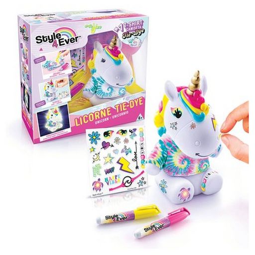 Découvre une licorne trop mignonne à personnaliser avec Style4Ever. Décore son t-shirt grâce aux feutres lavables. Le t-shirt est lavable, tu vas pouvoir recréer autant de motifs que tu le souhaites. Pour finir, ajoute tes stickers sur ta licorne et met la dans le noir, tu verras, elle est phosphore