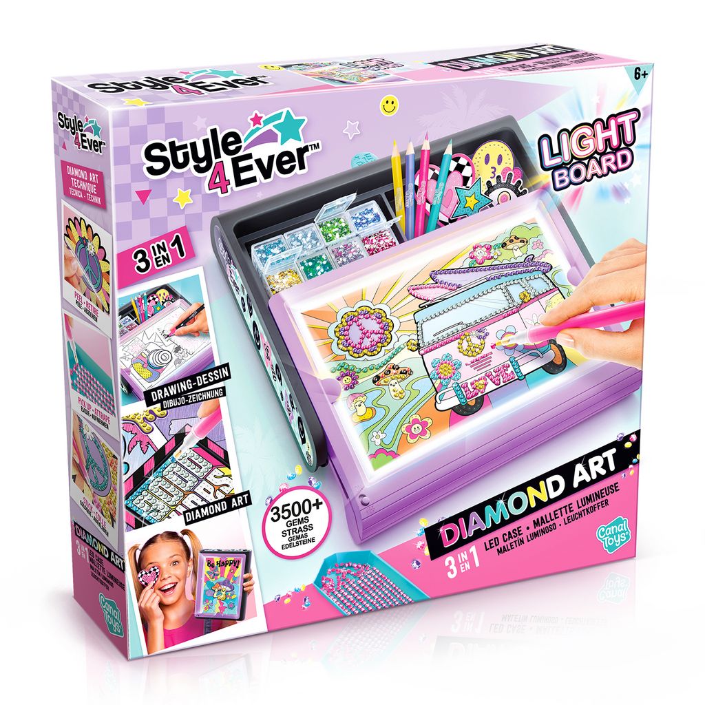 La mallette lumineuse Canal Toys - Style For Ever - Diamant'Art OFG 300 est un kit créatif idéal pour les enfants qui aiment l'art et la décoration. Ce produit combine une planche lumineuse avec des éléments de diamant'art, permettant aux jeunes artistes de créer leurs propres œuvres lumineuses et colorées. Avec sa conception portable et ses compartiments de stockage, cette mallette est parfaite pour les activités créatives en famille ou en groupe.