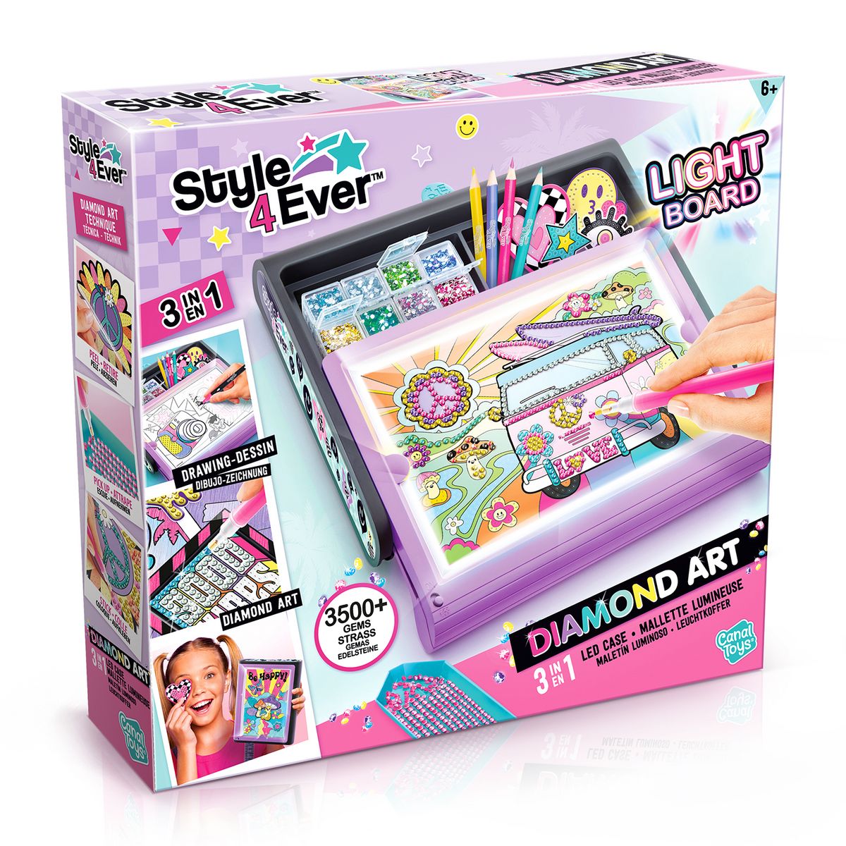 - Kit créatif complet avec planche lumineuse et éléments de diamant'art