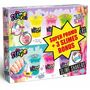 Découvrez le kit créatif Slime Shakers de la marque Canal Toys, idéal pour stimuler la créativité des enfants dès 3 ans. Ce coffret comprend 6 shakers, 3 sachets de poudre à slime et 3 sachets de slime prêt à l'emploi, permettant aux enfants de créer et personnaliser leur propre slime avec des décor
