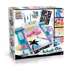 Avec ce studio, peindre des aquarelles n'aura jamais été aussi facile. Mélange les couleurs, ajoute de l'eau pour créer des effets artistiques incroyables grâce aux outils inclus. Plus de 6 techniques à découvrir dans ton guide inclus.
