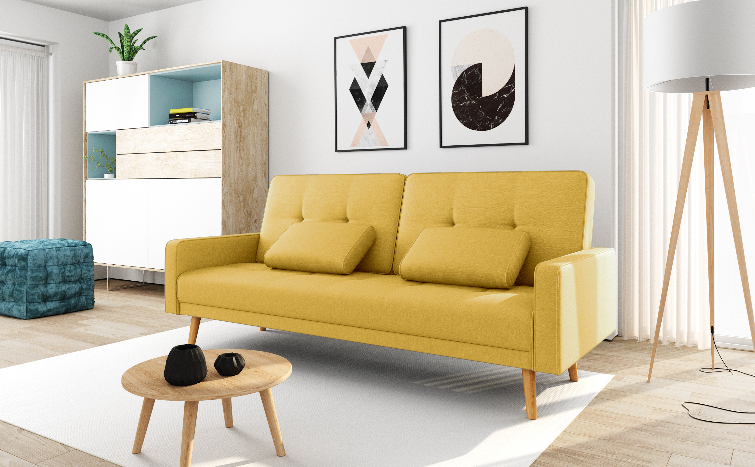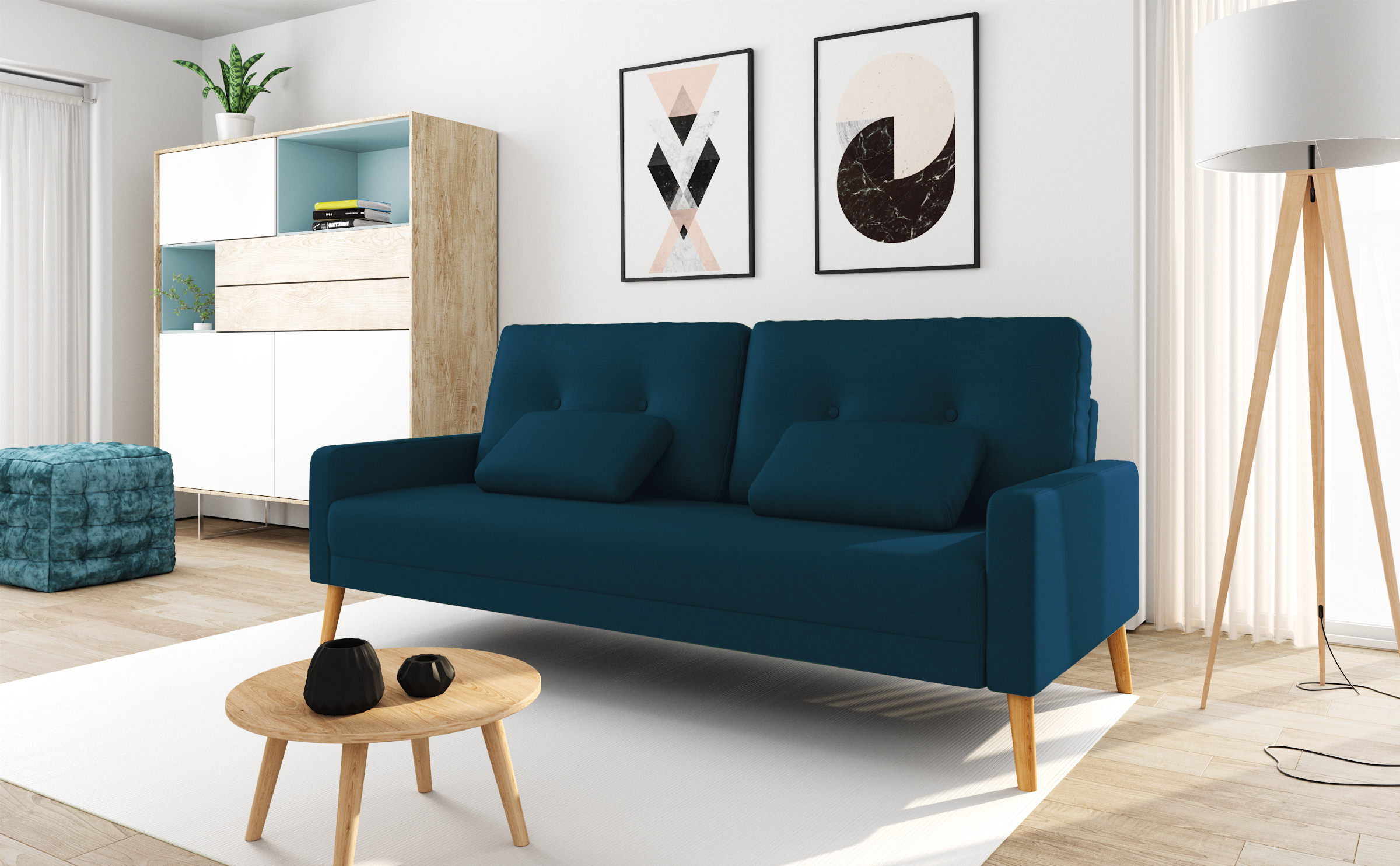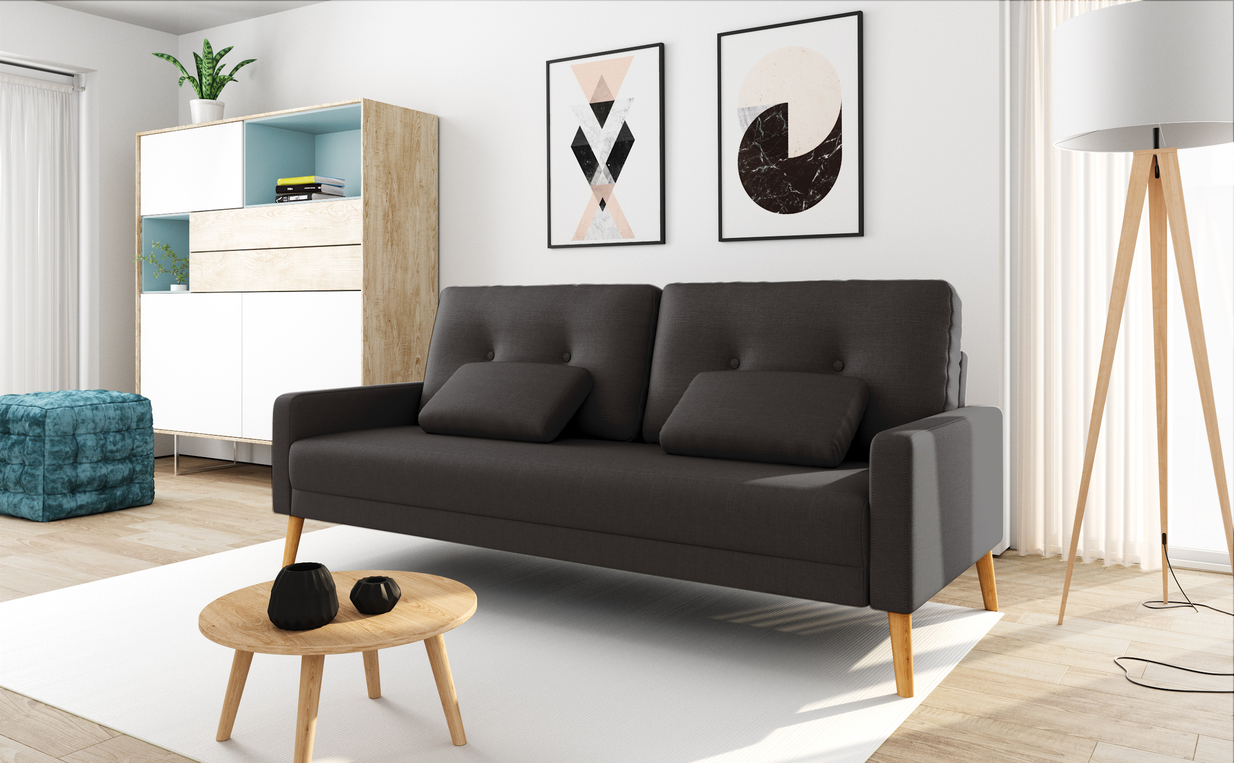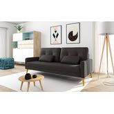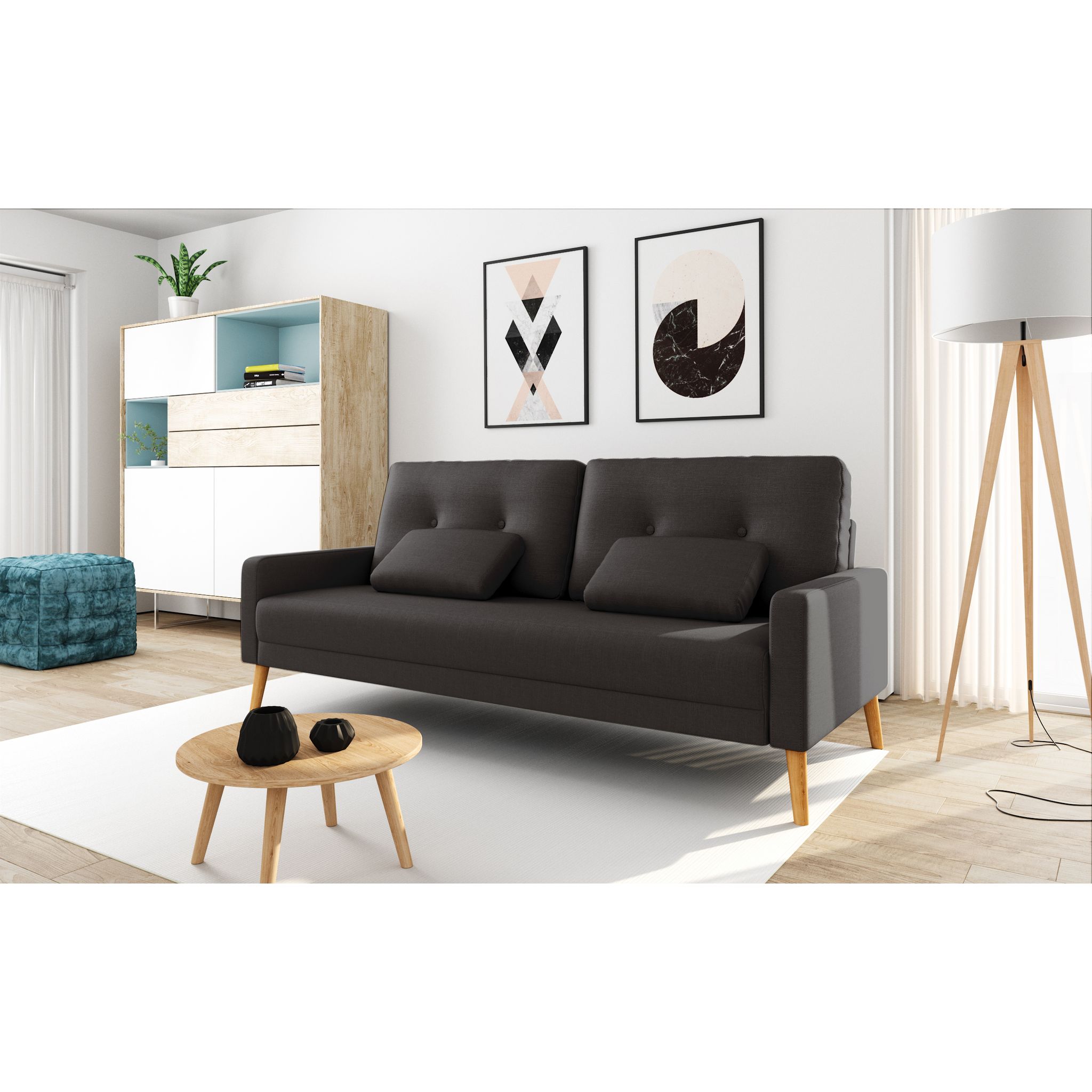 Canapé 3 places scandinave convertible NOVA, assise tissu pieds en bois