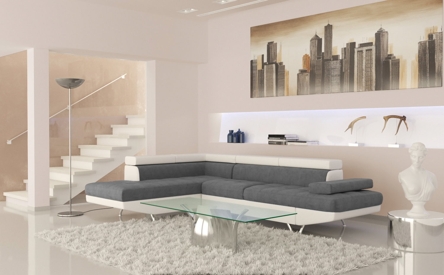 Canapé angle gauche convertible 4 à 5 places bimatière microfibre/simili CHICAGO