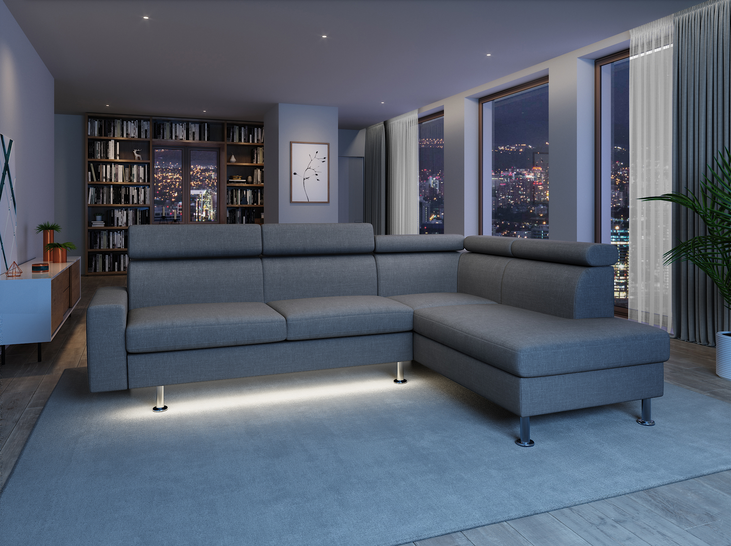 Avec son design contemporain, le canapé d'angle fixe non convertible TOMY 4/5 places embellit parfaitement votre intérieur. Il offre un système LED multicolore sous le canapé, contrôlé avec la télécommande (incluse) ; il nécessite un branchement sur prise secteur 220v. Ce canapé fixe est composé de bois massif + ressort nozag - la partie garnissage est composée d'une mousse à forte resilience 28kg/m3 + un couche supérieure de ouate d’accueil pour plus de souplesse lors de l'assise ; ses 5 appuis-têtes sont aussi amovibles et reglables. Sur la large méridienne, vous passerez de bons moments de détente devant la TV ou pour lire un livre. Le canapé Tomy est disponible en angle droit ou gauche, coloris blanc/gris, noir/gris, gris clair ou gris foncé pour s'adapter à votre intérieur et à vos gouts.