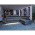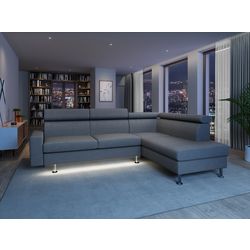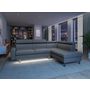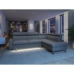 Canapé d'angle 4-5 places fixe avec LED -TOMY- Tissu gris chiné clair - Angle droit