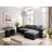 méridienne d'angle réversible gauche-droite - coffre de rangement sous méridienne - accoudoir fixe à gauche avec 2 poufs - accoudoir fixe à droite avec étagères - convertible en lit - production européenne - coussins décoratifs déhoussables