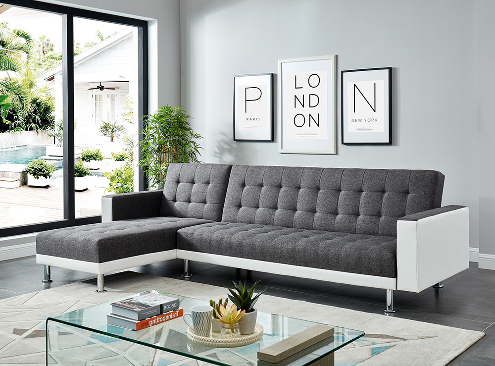 Craquez pour ce magnifique canapé au design moderne avec ses pieds chromés et son revêtement capitonné ! Le canapé LUXOR vous offre confort et praticité avec sa fonction réversible. Convertible, il vous permet d'accueillir vos invités le temps d'une nuit. Le canapé LUXOR s'intégrera parfaitement à v
