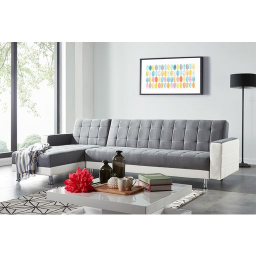Craquez pour ce magnifique canapé au design moderne avec ses pieds chromés et son revêtement bicolore en polyuréthane et tissu toucher velours capitonné ! Le canapé LUXOR est pratique pour recevoir le temps d'un week-end avec sa fonction convertible. Réversible, il trouvera facilement sa place dans votre intérieur.N'hésitez plus, laissez-vous séduire par le canapé LUXOR convertible et réversible qui pourra accueillir famille et amis pour des moments de détente et de convivialité !