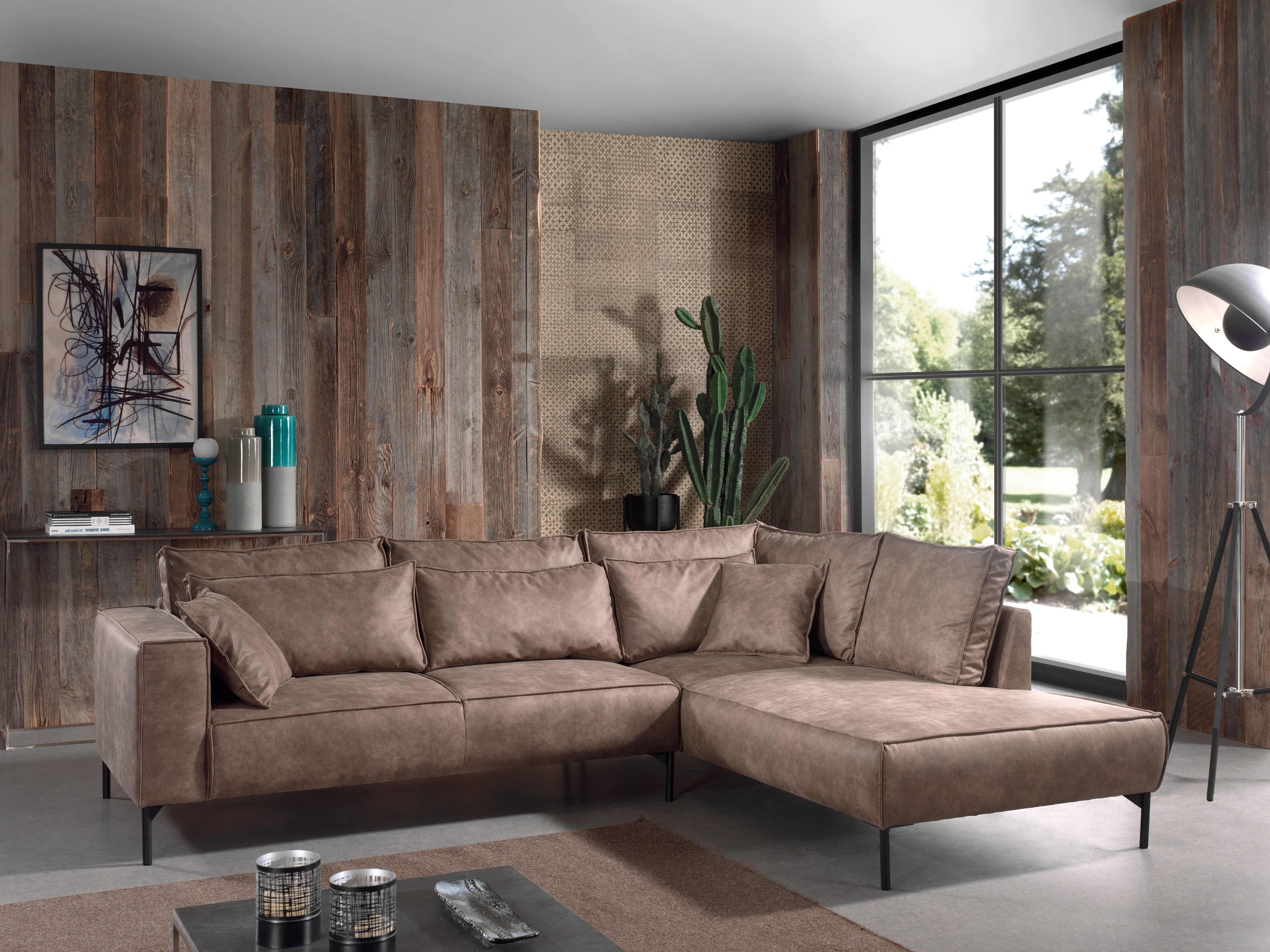 Canapé d'angle droit 4 places BOK, tissu vintage, pieds métal