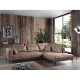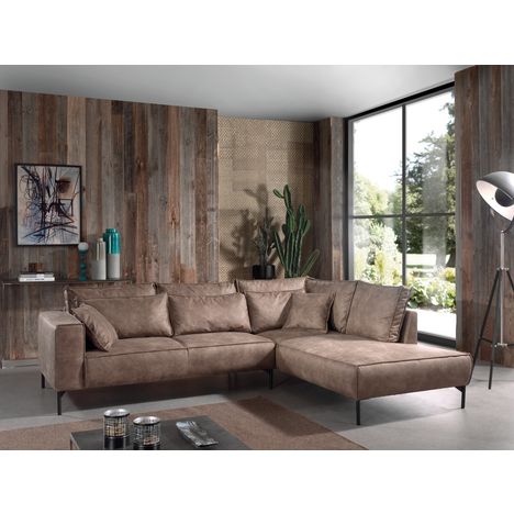 Le style vintage est mis en avant avec ce splendide canapé d'angle droit ! Son coloris marron vieilli est original et ses pieds en métal design lui donne un aspect très contemporain. Ne lésinant pas sur le confort, il offre 4 bonnes places.