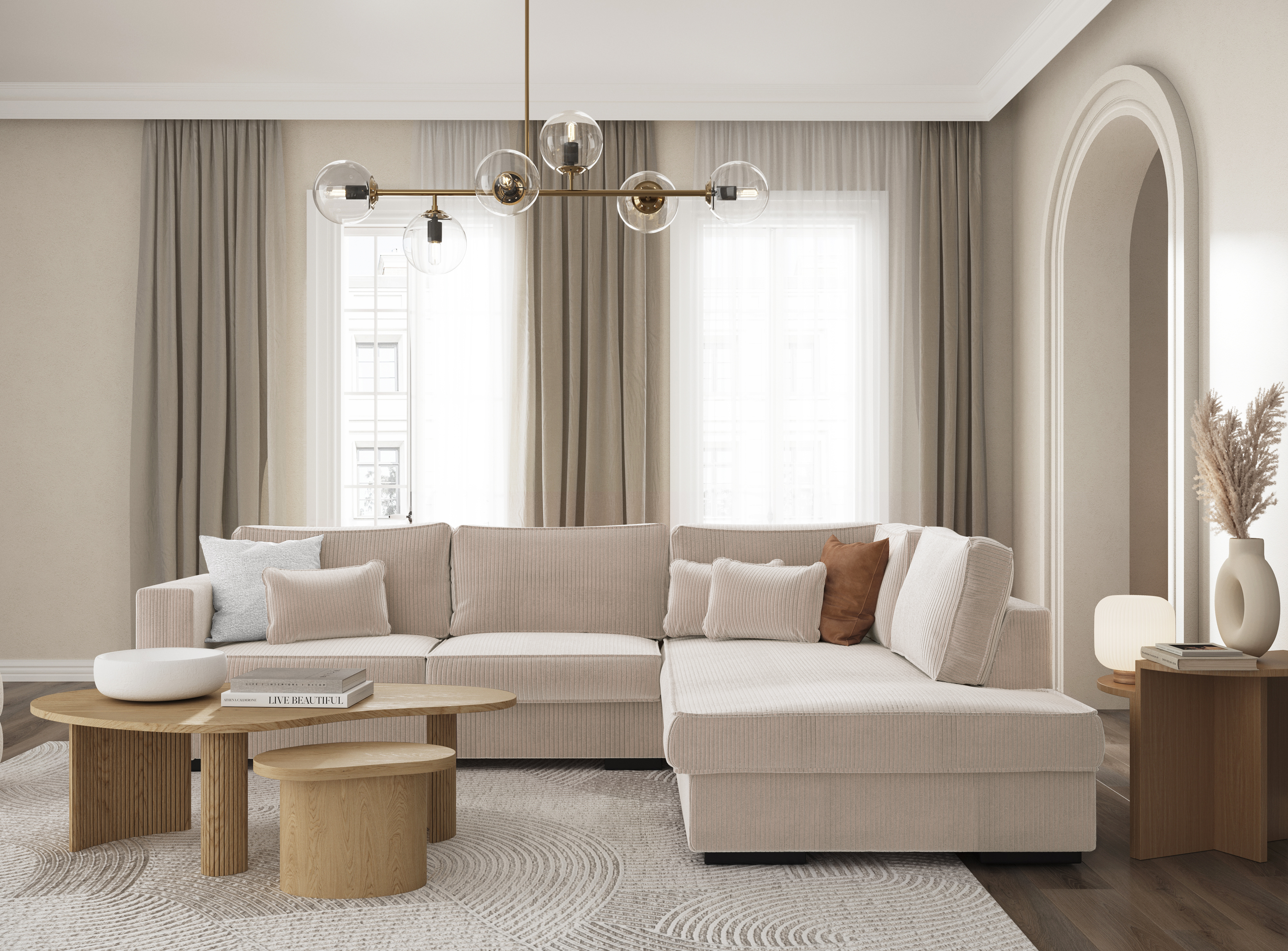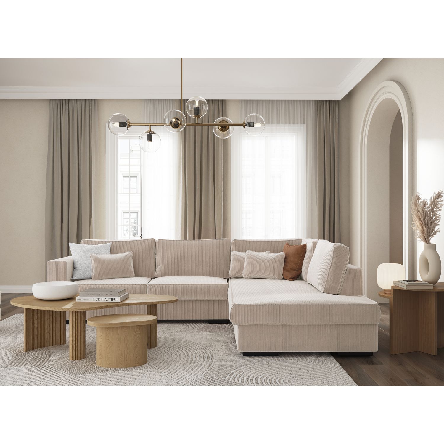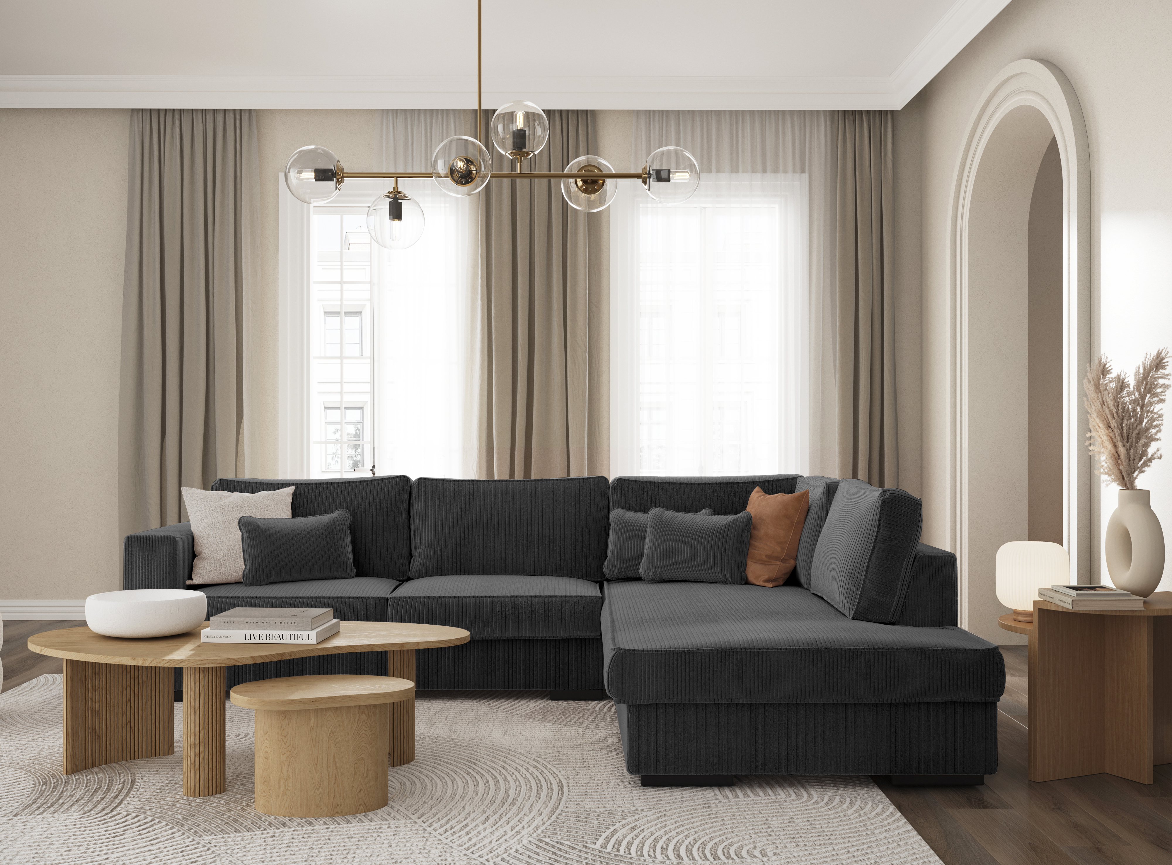 Le canapé d'angle droit 4 places en velours côtelé PENELOPE offre un design parfait pour un salon contemporain. Son esthétisme réussi s'accompagne d'un confort unique avec des dimensions généreuses offrant 4 places spacieuses. Disponible en différentes couleurs telles que beige, bleu pétrole, gris clair et gris foncé, ainsi qu'en velours côtelé beige et gris foncé, ce canapé s'adapte à diverses préférences pour séduire un large public. Un choix élégant pour compléter votre espace de vie.