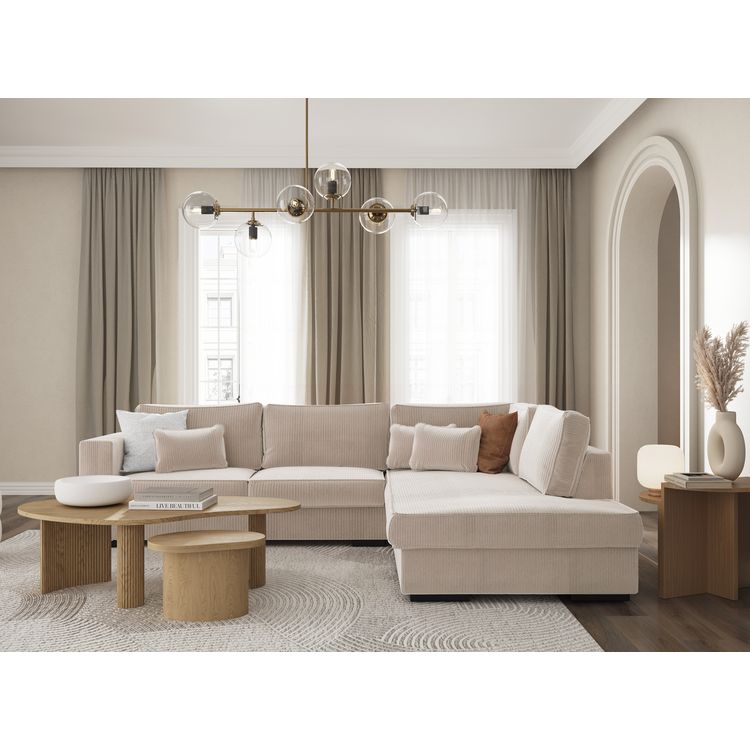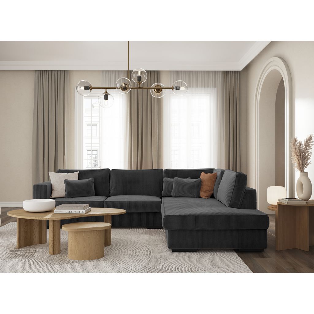 Canapé d'angle droit 4 places velours cotelé PENELOPE