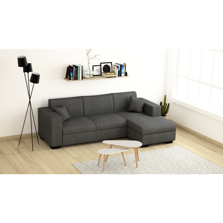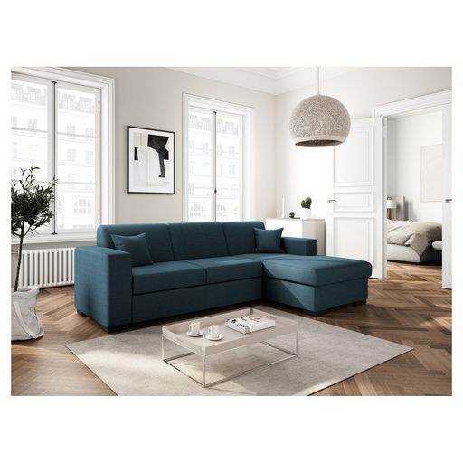 Canapé d'angle droit convertible 4 places avec coffre de rangement revêtement tissu CARIBEA