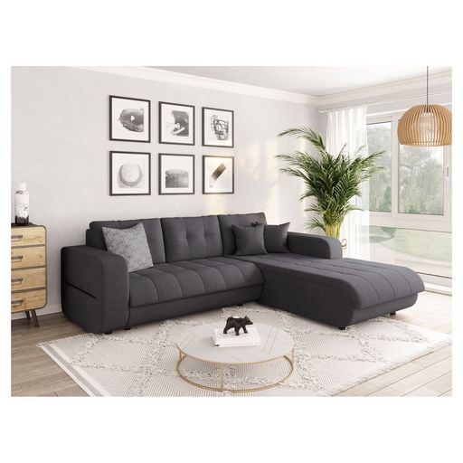 Moderne et design, ce magnifique canapé d'angle convertible 4 places CLELIA en tissu dispose d'une large méridienne qui vous permettra d'être confortablement installé pour des moments de détente agréables. Pratique et spacieux, il est convertible en lit 2 personnes !