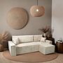 Le canapé d'angle droit MATTIA en velours côtelé beige ultra tendance est l'alliance parfaite de confort et de praticité. Conçu pour accueillir 3 personnes, il offre un toucher doux et un confort exceptionnel. Idéal pour partager des moments conviviaux en famille ou entre amis, il se transforme rapidement en lit faisant de votre salon une chambre d'amis en un instant. Pratique, il dispose d'un coffre de rangement discret sous l'assise pour ranger vos affaires. Le canapé MATTIA est le choix parfait pour un intérieur élégant et fonctionnel.