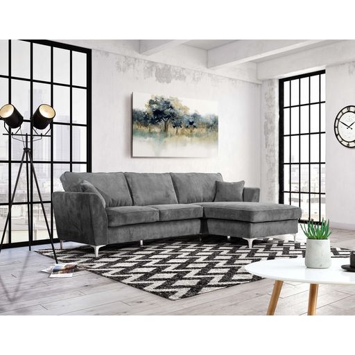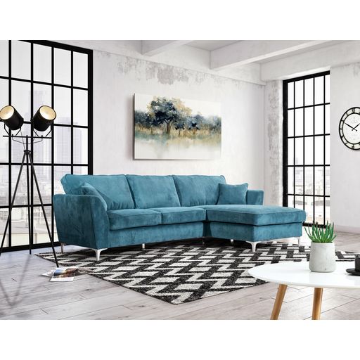 Magnifique canapé d'angle 4 places au revêtement tissu tout doux ! Un confort moelleux et une très large assise avec un garnissage en mousse polyuréthane et ouate d'une très bonne densité ! Les pieds en métal de 13cm de hauteur donnent une véritable touche de modernité et de design à l'ensemble. De fabrication européenne, sa structure et ses suspensions ressorts sont de qualités et vous garantissent une solidité sur très longue durée ! Alors, vous êtes plutôt bleu élégant ou gris tendance ? Choisissez le vôtre parmi les 3 coloris proposés ! Existe en angle gauche Réf CA1091686.