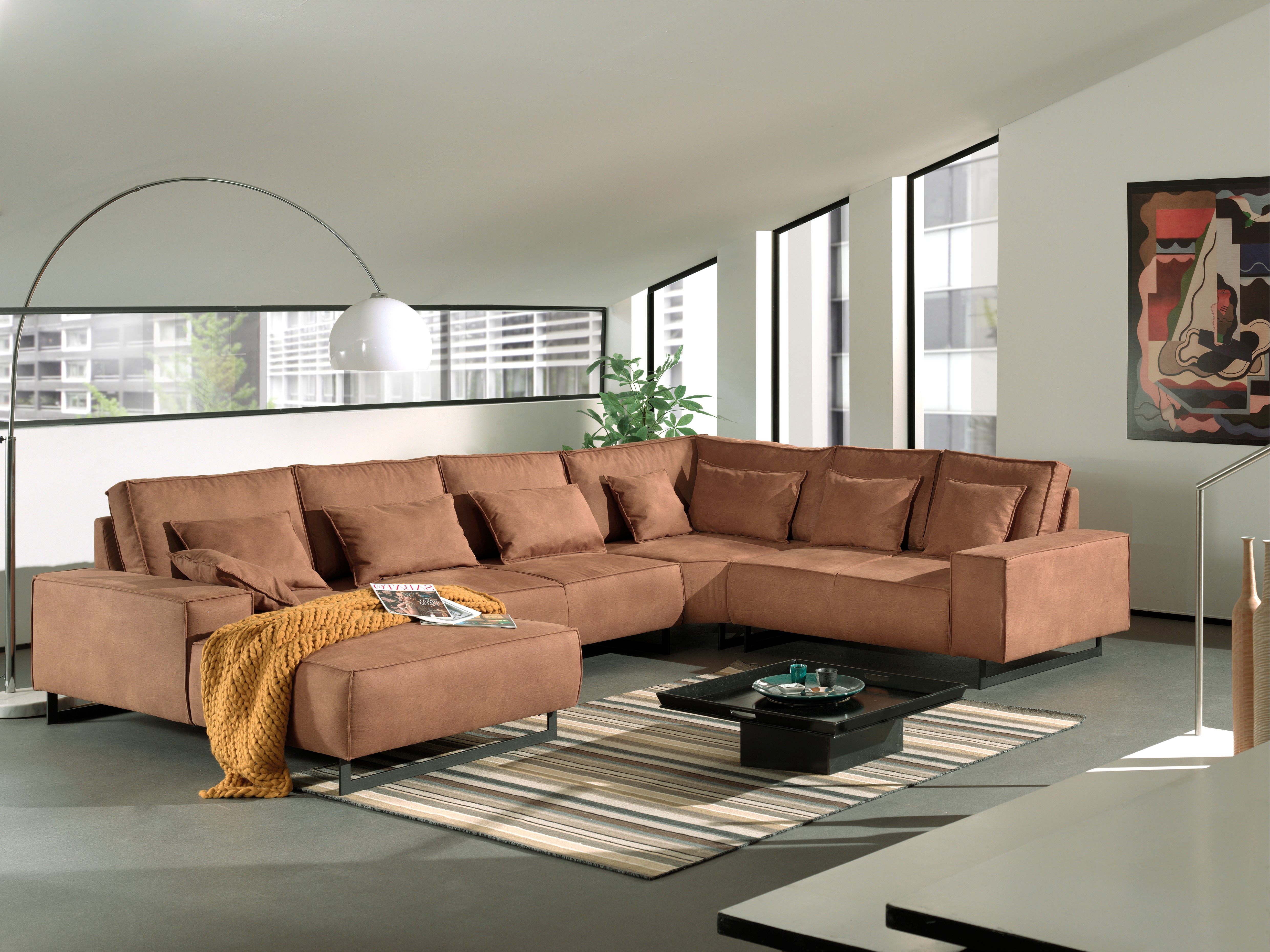 Canapé d'angle droit panoramique 6 places pied métal NATH