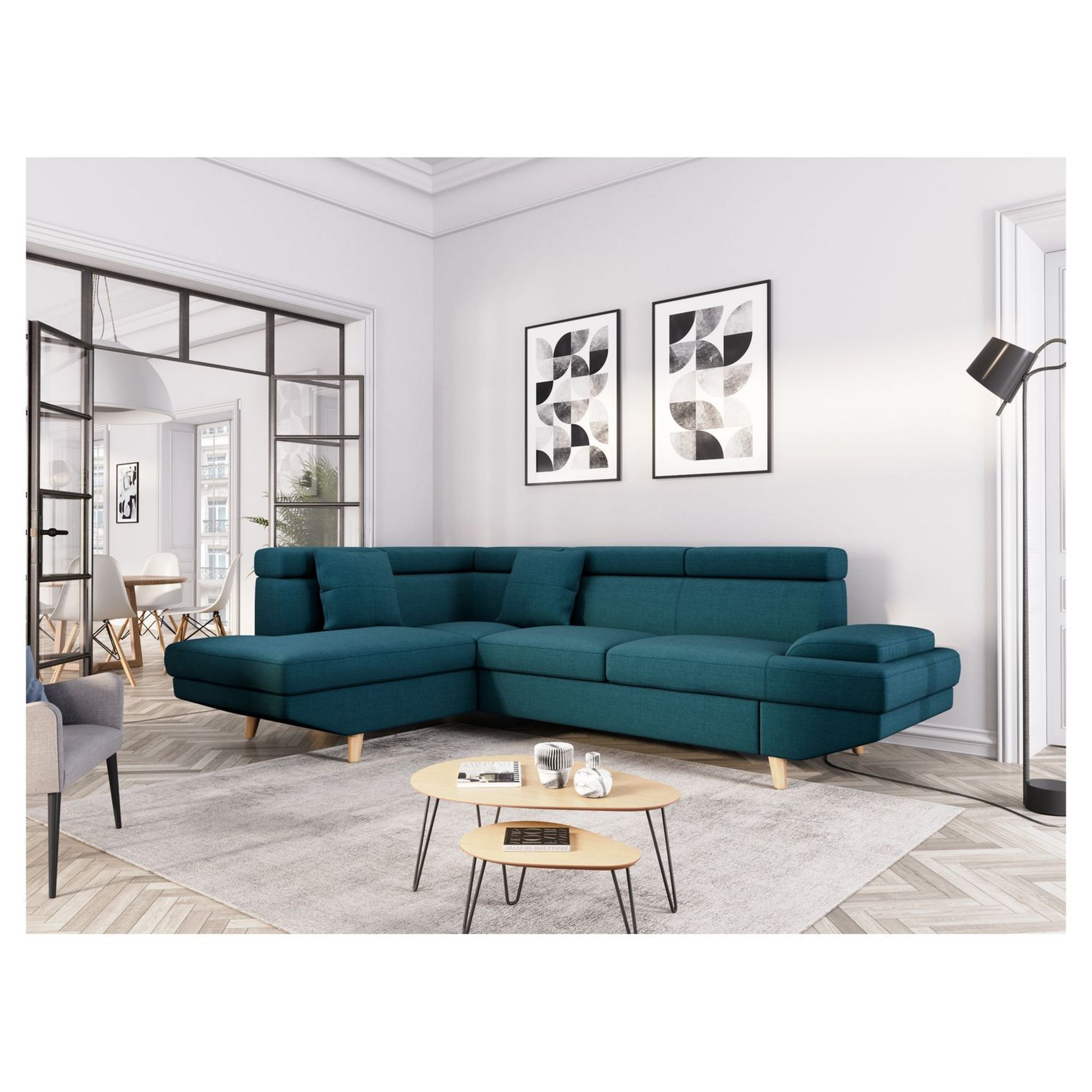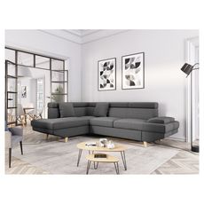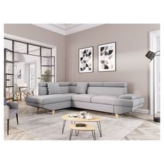 Ce canapé offre à la fois confort et design, et son look scandinave des plus recherchés est rendu possible grâce à l’utilisation du bois, pour la conception de pieds très esthétiques et naturels à la fois. Il sera idéal pour offrir un confort optimal à vos clients, dans de nombreux styles d’intérieur. Parmi ses atouts, ce canapé d’angle comporte notamment une large méridienne, un lit d’appoint pour deux personnes, ainsi que des coussins ton sur ton, qui se marient à merveille avec le design du sofa.