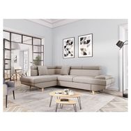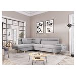 Canapé d'angle gauche convertible 5 places tissu pieds bois clair MARIUS