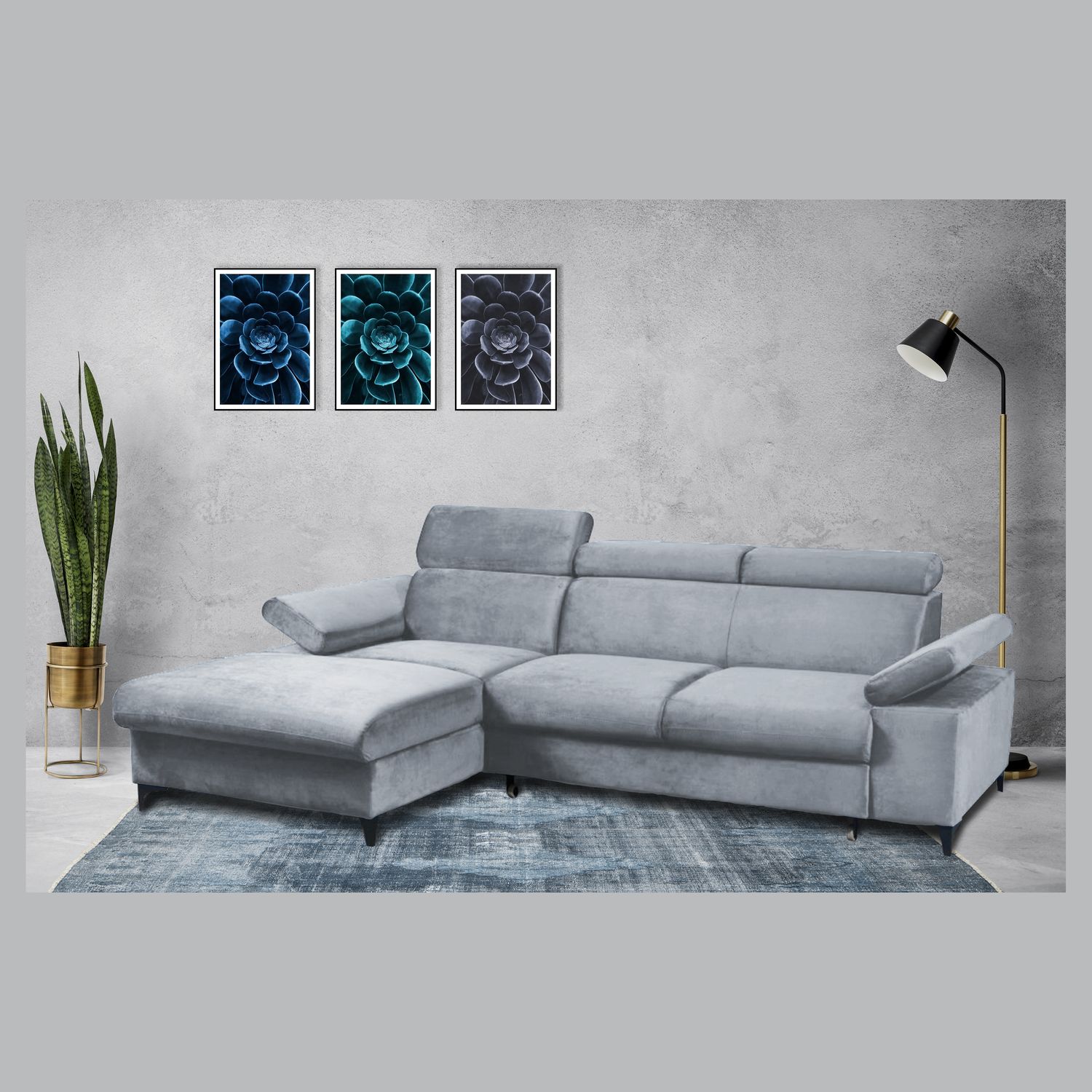 Canapé d'angle gauche fixe convertible 5 places avec coffre de rangement AURELIE