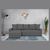 Tissu 100% polyester toucher doux. Assise 28kg/m3. 5 coussins inclus