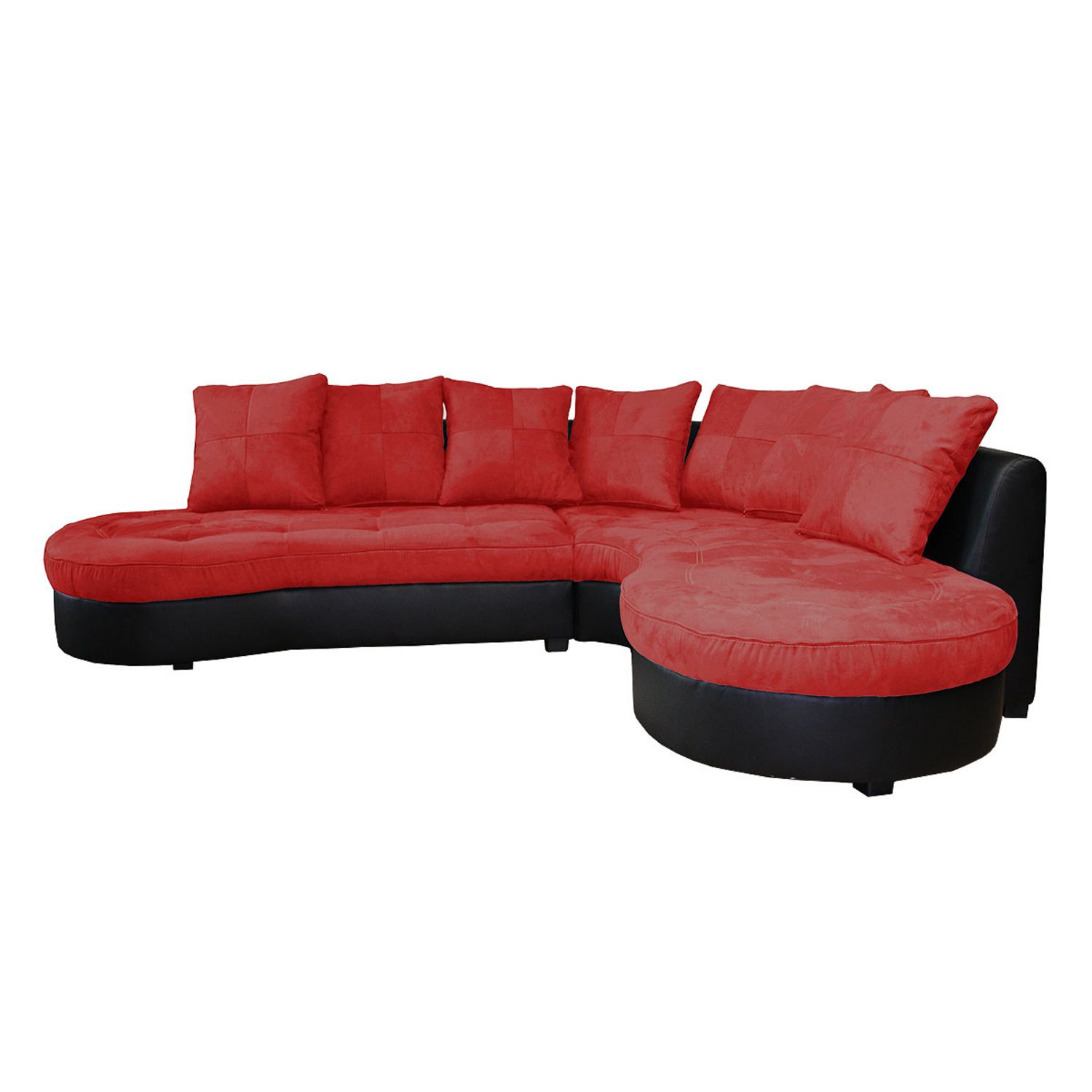 Un canapé d'angle qui combine tous les atouts ! Côté esthétique, un design très moderne et le coup d’éclat du tissu microfibre rouge passion en contraste avec la base en revêtement synthétique noir. Côté pratique, des dimensions généreuses pour accueillir toute la famille, et la douceur accueillante de la microfibre. Un canapé "coup de cœur"!