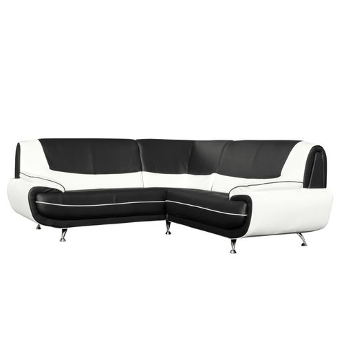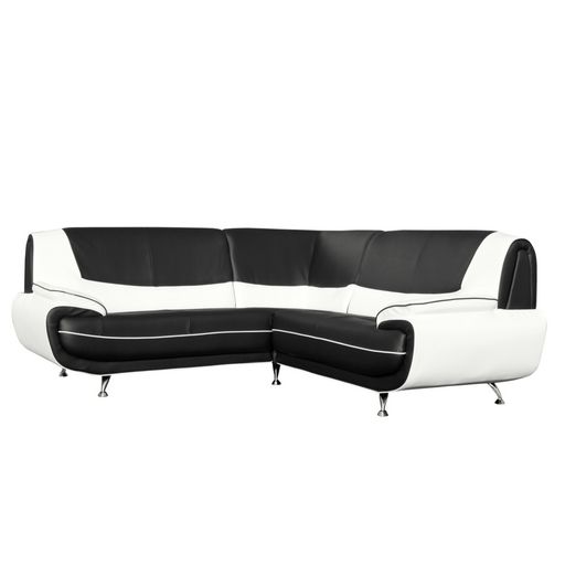 Canapé d’angle doté d'un design un peu « vintage » 100% tendance, des dimensions généreuses, la touche d’originalité des 2 couleurs associées et l’élégance des fins pieds métal… un canapé à forte personnalité pour un intérieur contemporain chic.